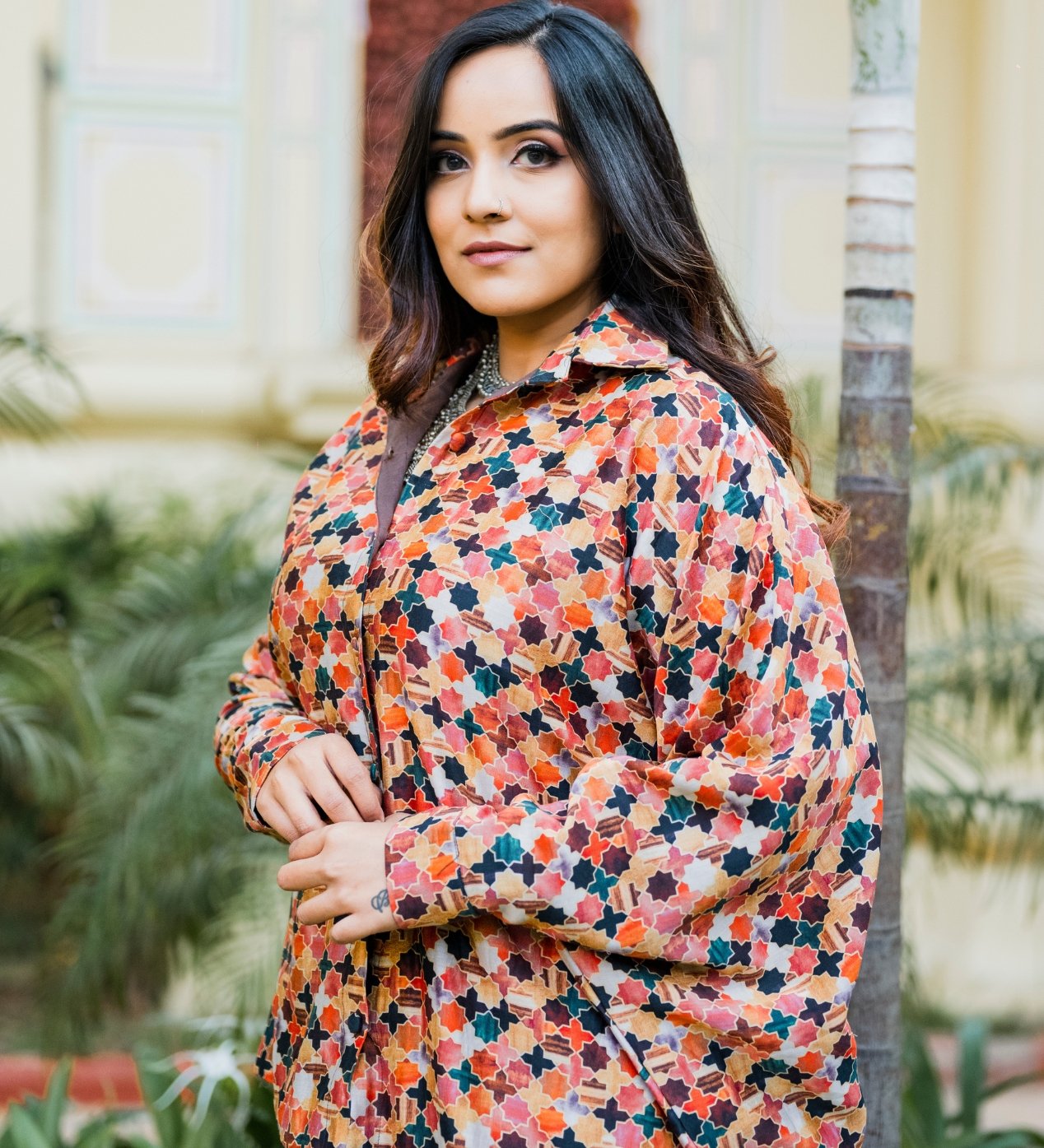 HomeZellijAsymmetric Co ord Set Asymmetric Co ord Set₹8,700.00 Moroccan Print Asymmetric Draped Shirt with Green Wide Leg Pants. Shirt Fabric: Chanderi Pant Fabric: cotton cambric Asymmetric Co ord Set quantity Buy now Add to WishlistRemove from Wishlist Add to Wishlist Categories: Women, Zellij Product ID: 20291 Additional information Reviews (0) Additional information Products Shirt, Pants Reviews There are no reviews yet. Be the first to review “Asymmetric Co ord Set”Your email address will not be published. Required fields are marked *Name Email Your rating * Rate… Perfect Good Average Not that bad Very poor Your review * I agree that my submitted data is being collected and stored. Related products Add to WishlistRemove from Wishlist Add to Wishlist Morrocan skirt blouse set ₹6,300.00 Buy now Add to WishlistRemove from Wishlist Add to Wishlist Chanderi Saree with Blouse ₹12,000.00 Buy now Add to WishlistRemove from Wishlist Add to Wishlist Moroccan Inspired Printed Maxi ₹8,200.00 Buy now
