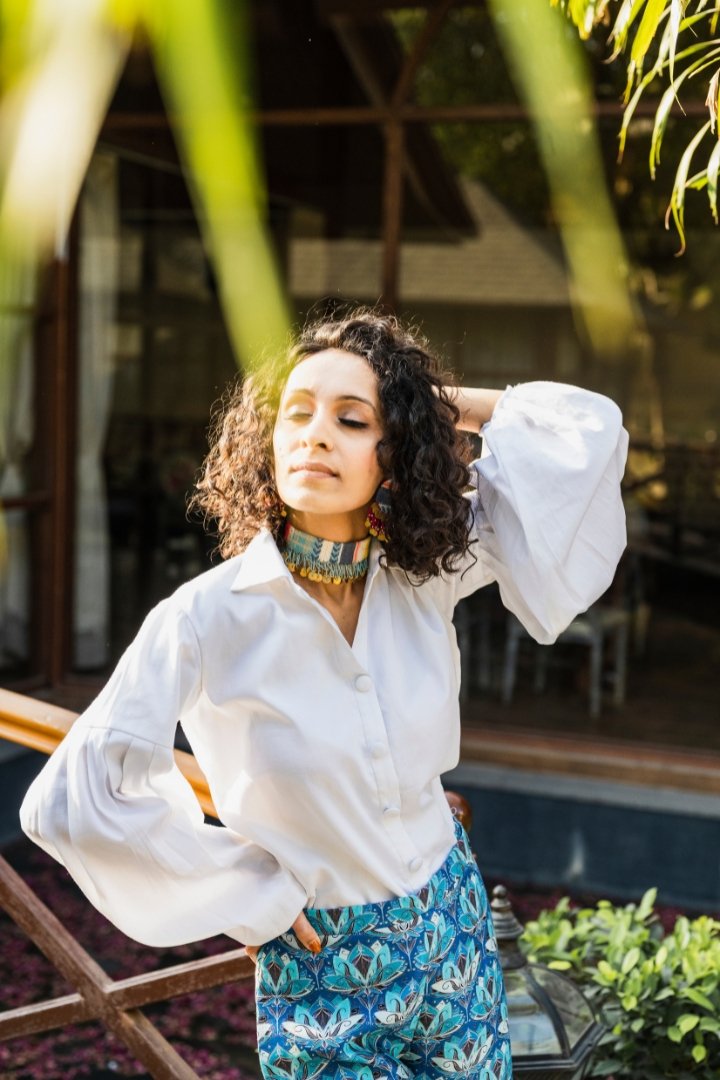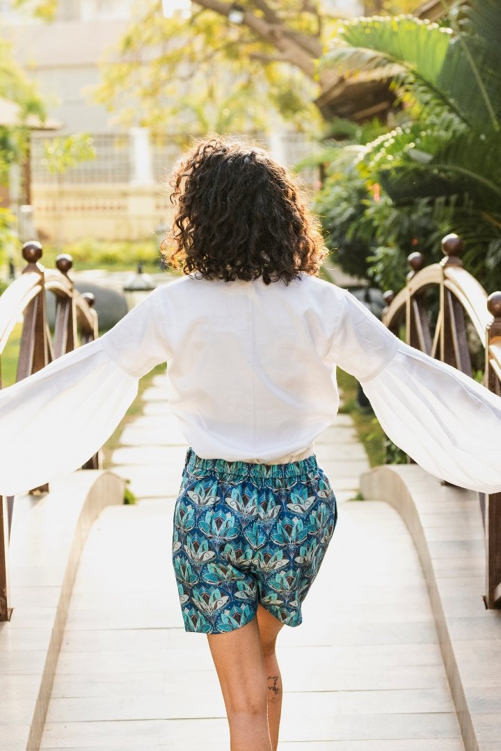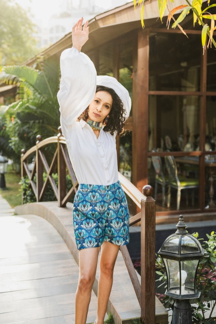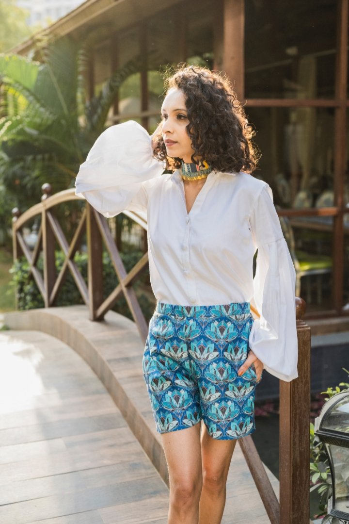 HomeWomenLotus shorts with cambric shirt Lotus shorts with cambric shirt₹7,700.00 Blue Lotus Print Shorts with Balloon Sleeve Stylized Ivory Shirt. Shirt Fabric: Cotton Cambric Shorts Fabric: Chanderi Lotus shorts with cambric shirt quantity Buy now Add to WishlistRemove from Wishlist Add to Wishlist Categories: Women, Zellij Product ID: 20352 Reviews (0) Reviews There are no reviews yet. Be the first to review “Lotus shorts with cambric shirt”Your email address will not be published. Required fields are marked *Name Email Your rating * Rate… Perfect Good Average Not that bad Very poor Your review * I agree that my submitted data is being collected and stored. Related products Add to WishlistRemove from Wishlist Add to Wishlist Scallop kurta set ₹12,500.00 Buy now Add to WishlistRemove from Wishlist Add to Wishlist Moroccan Inspired Printed Maxi ₹8,200.00 Buy now Add to WishlistRemove from Wishlist Add to Wishlist Chanderi Culotte Set ₹7,300.00 Buy now