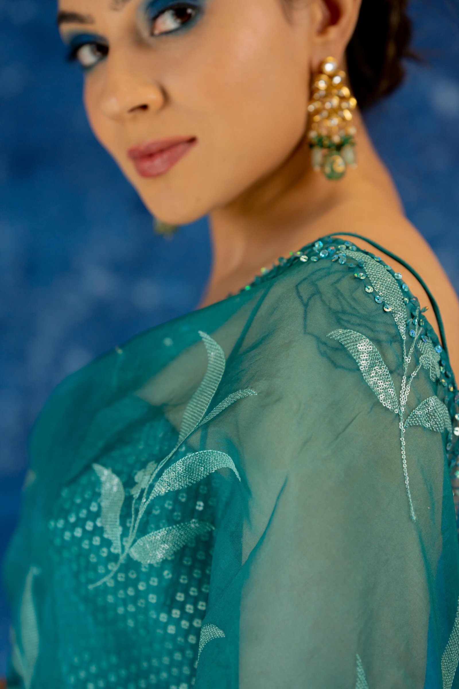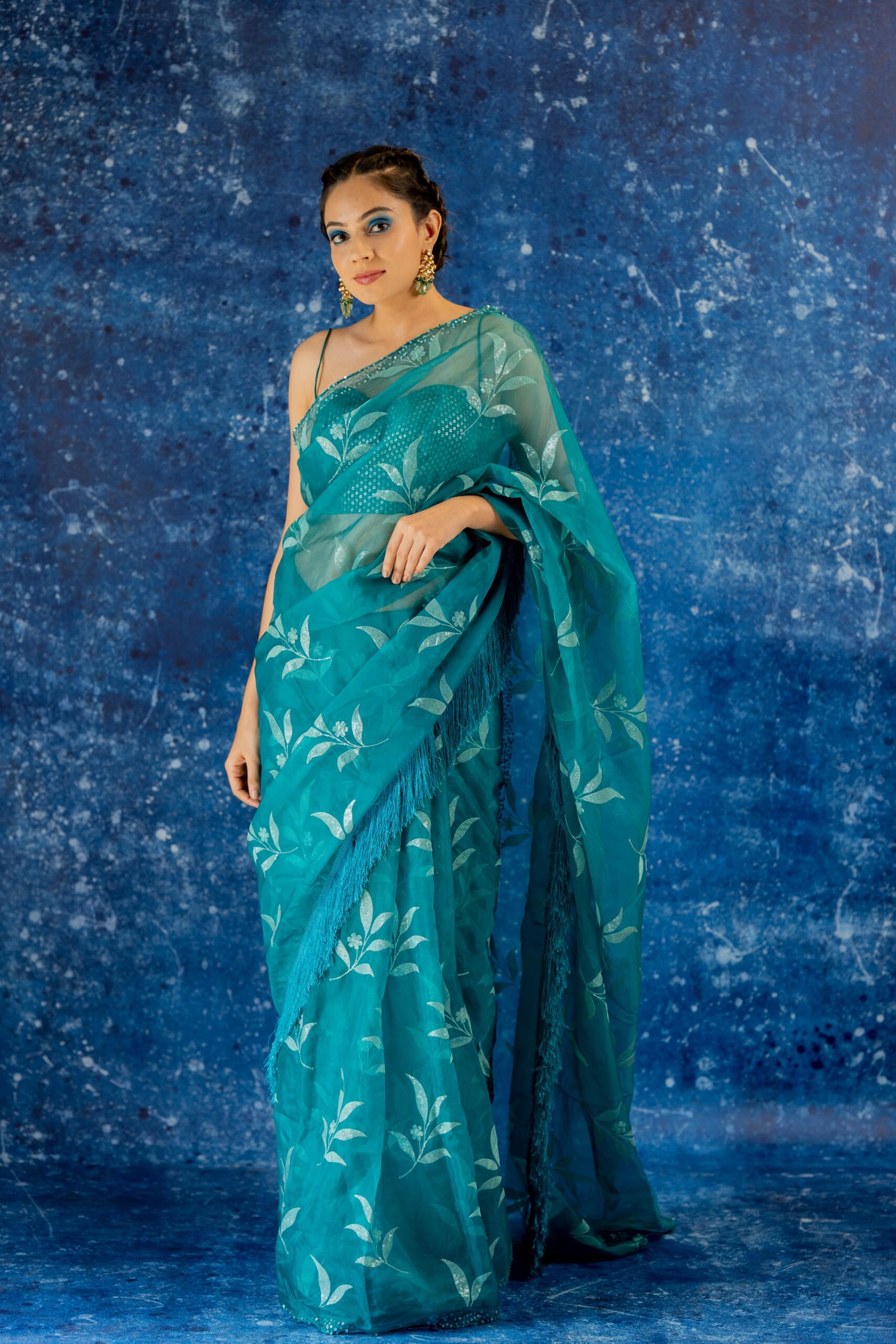 HomeAuroraTeal Organza Saree Teal Organza Saree₹15,200.00 Teal Organza Self Sequinced Saree with textured Blouse. Saree Fabric: Organza Blouse Fabric: Georgette Teal Organza Saree quantity Buy now Add to WishlistRemove from Wishlist Add to Wishlist Categories: Aurora, Women Product ID: 20377 Reviews (0) Reviews There are no reviews yet. Be the first to review “Teal Organza Saree”Your email address will not be published. Required fields are marked *Name Email Your rating * Rate… Perfect Good Average Not that bad Very poor Your review * I agree that my submitted data is being collected and stored. Related products Add to WishlistRemove from Wishlist Add to Wishlist Lotus Indowestrn Top ₹4,800.00 Buy now Add to WishlistRemove from Wishlist Add to Wishlist Teal Organza Jacket set ₹14,300.00 Buy now Add to WishlistRemove from Wishlist Add to Wishlist Green koti & Sharara set ₹15,300.00 Buy now
